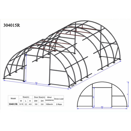 Hala łukowa z ramą o szerokości 9 m